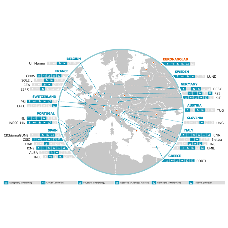 NFFA-Europe is a distributed research infrastructure that integrates nanofoundries (growth, synthesis and nano/micro-fabrication) with advanced characterization and fine analysis available at European large-scale facilities, and with theory and simulation tools. It offers users the possibility to carry out cutting edge research at the frontier of the nanoscience and nanotechnology with the widest possible range of tools and more than 180 techniques currently available. Researchers accessing the NFFA-Europe facilities can control and design the properties of materials from the nano- to the micro-scale, and even up to the macro-scale.